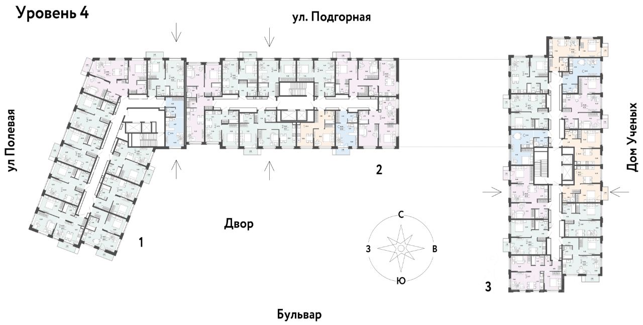 Преимущества •Тематический бульвар объединяет дома и закрытые дворы квартала в единую экосистему: зелень, перголы для отдыха, детские и спортивные площадки. По вечерам бульвар преображается: освещение создаёт уютную атмосферу. •Новый детский сад рядом, который появится в 2026 году прямо в одном из корпусов комплекса. В нём выделено 150 мест для малышей. •Во дворах нет машин, шума, выхлопных газов и посторонних людей. Всё пространство разделено на зоны по интересам и возрастам. Для детей — игровые площадки из эко-материалов и мягкая защита от падений. Для взрослых — зоны отдыха, воркаут-площадки и тропинки для неспешных прогулок.