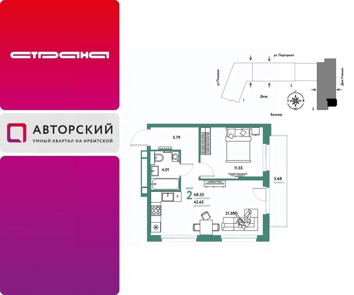 Новая квартира в ЖК ''Авторский'' напрямую от федерального застройщика ''Страна Девелопмент''.