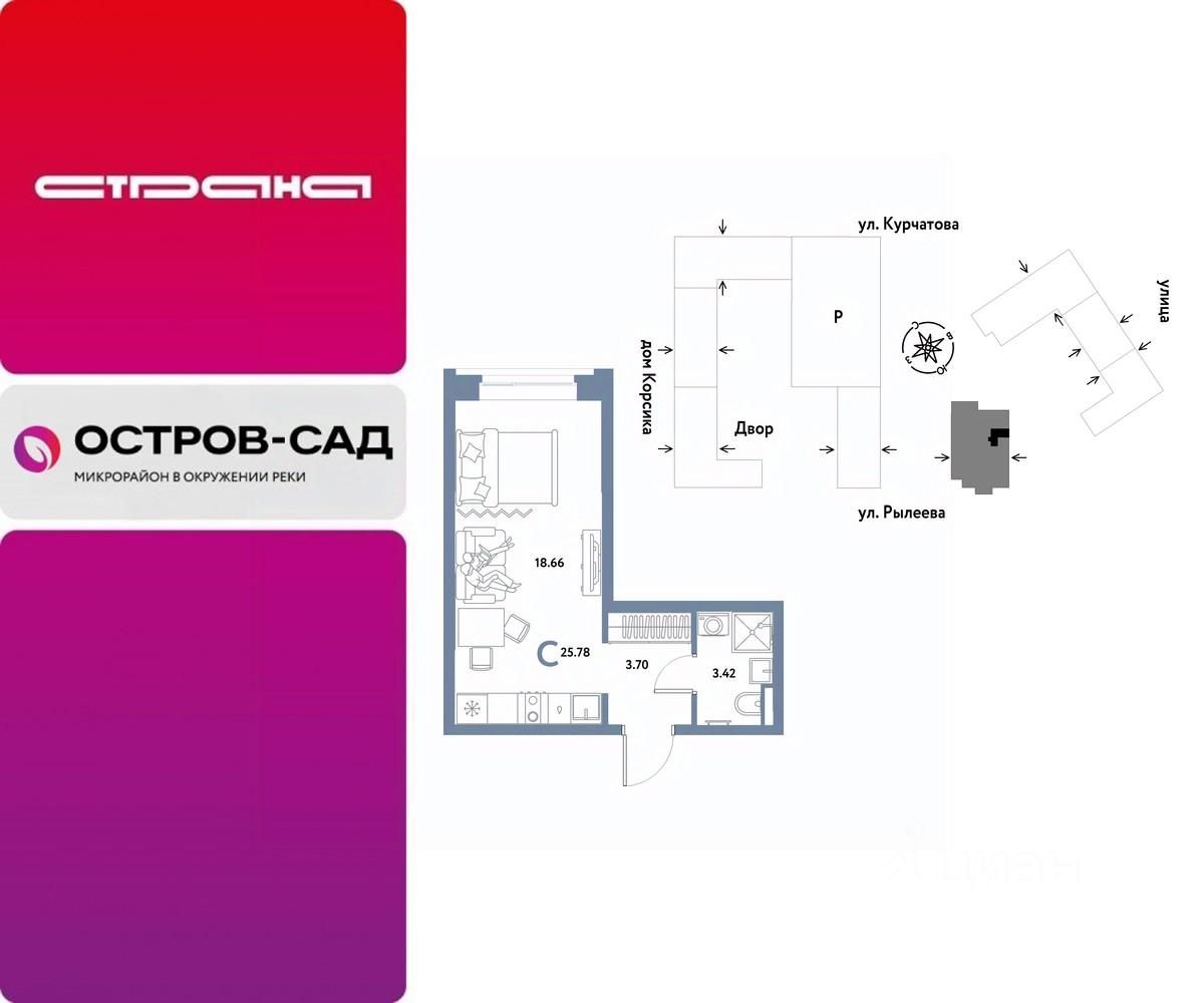 Продается 1комнатная квартира на 17 этаже от застройщика Страна Девелопмент. Площадь квартиры 25,58 кв. м.