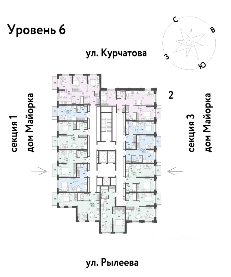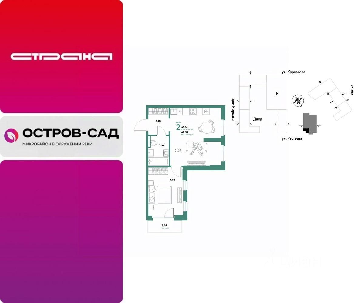 Продается 2комнатная квартира на 6 этаже от застройщика Страна Девелопмент. Площадь квартиры 45,29 кв. м.