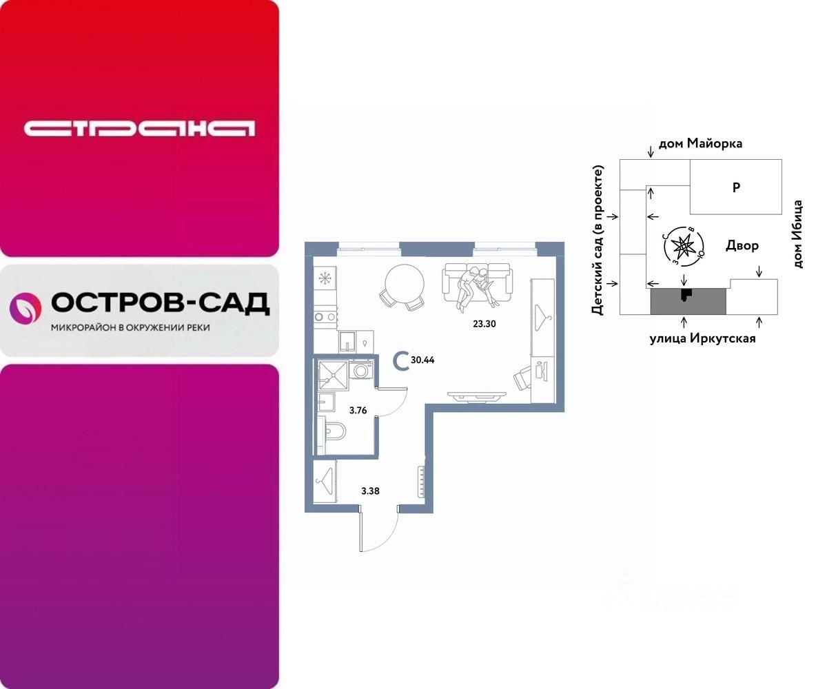 Продаётся студия в строящемся доме (Дом Тенерифе (ГП-2Я)), срок сдачи: IV-кв. 2027, общей площадью 30.44 кв.м., на 5 этаже. Новый жилой комплекс ''Остров-сад'' от Специализированного застройщика ''Страна. Коммунистическая'' расположен по адресу: г. Тюмень, по ул. Ярославская.