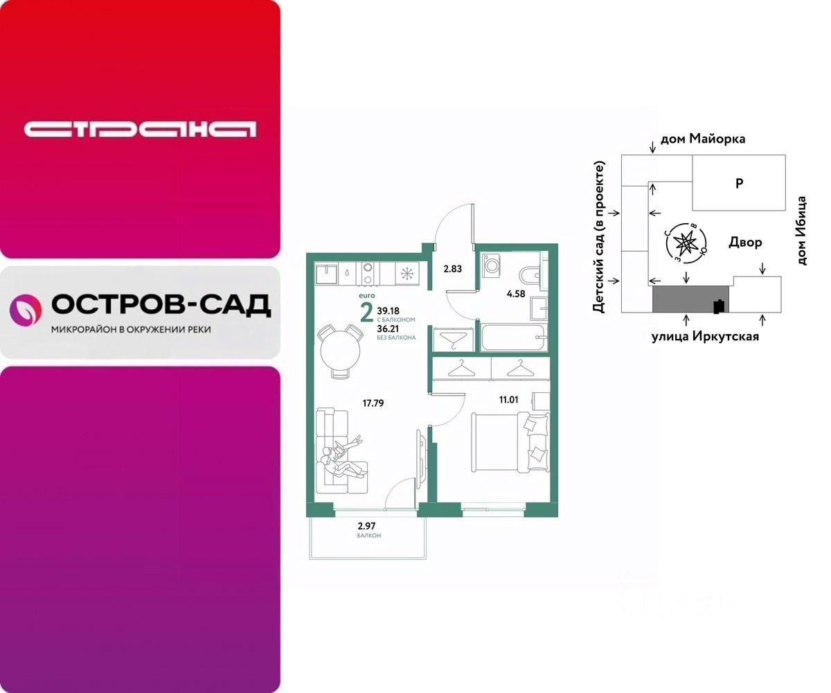Продаётся 2-комнатная квартира в строящемся доме (Дом Тенерифе (ГП-2Я)), срок сдачи: IV-кв. 2027, общей площадью 39.18 кв.м., на 8 этаже. Новый жилой комплекс ''Остров-сад'' от Специализированного застройщика ''Страна. Коммунистическая'' расположен по адресу: г. Тюмень, по ул. Ярославская.