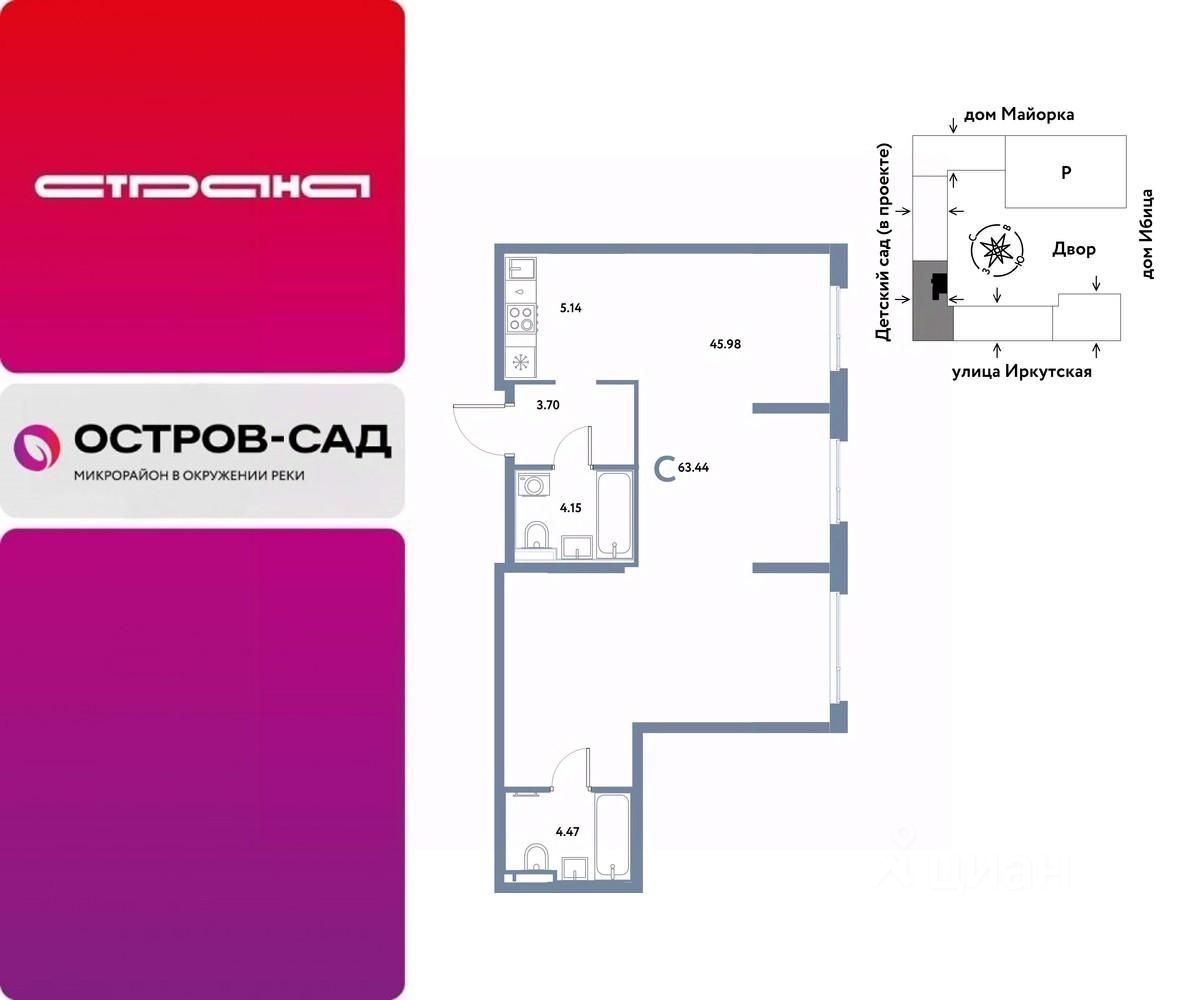 Продаётся студия в строящемся доме (Дом Тенерифе (ГП-2Я)), срок сдачи: IV-кв. 2027, общей площадью 63.44 кв.м., на 16 этаже. Новый жилой комплекс ''Остров-сад'' от Специализированного застройщика ''Страна. Коммунистическая'' расположен по адресу: г. Тюмень, по ул. Ярославская.
