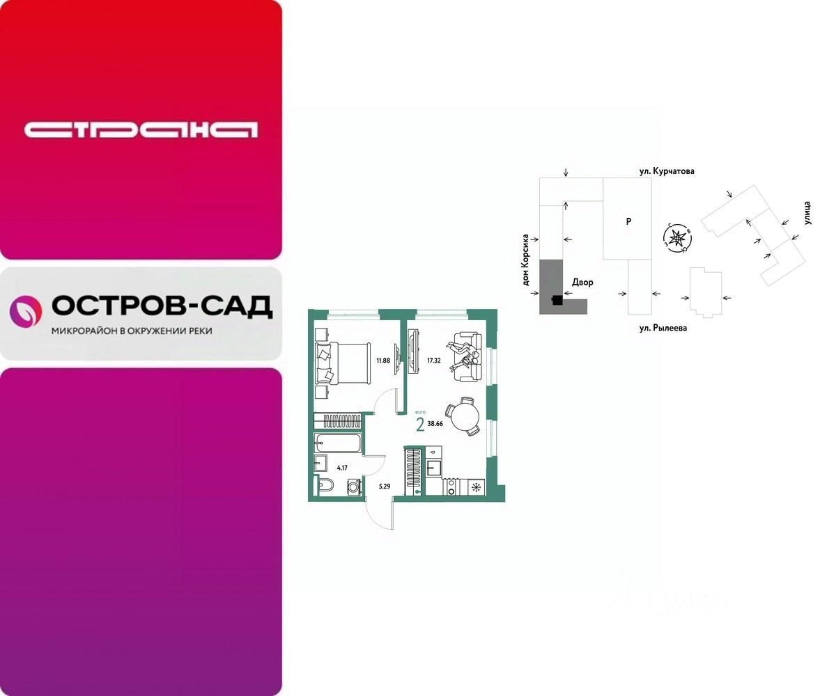 Продается 2комнатная квартира на 11 этаже от застройщика Страна Девелопмент. Площадь квартиры 38,66 кв. м.
