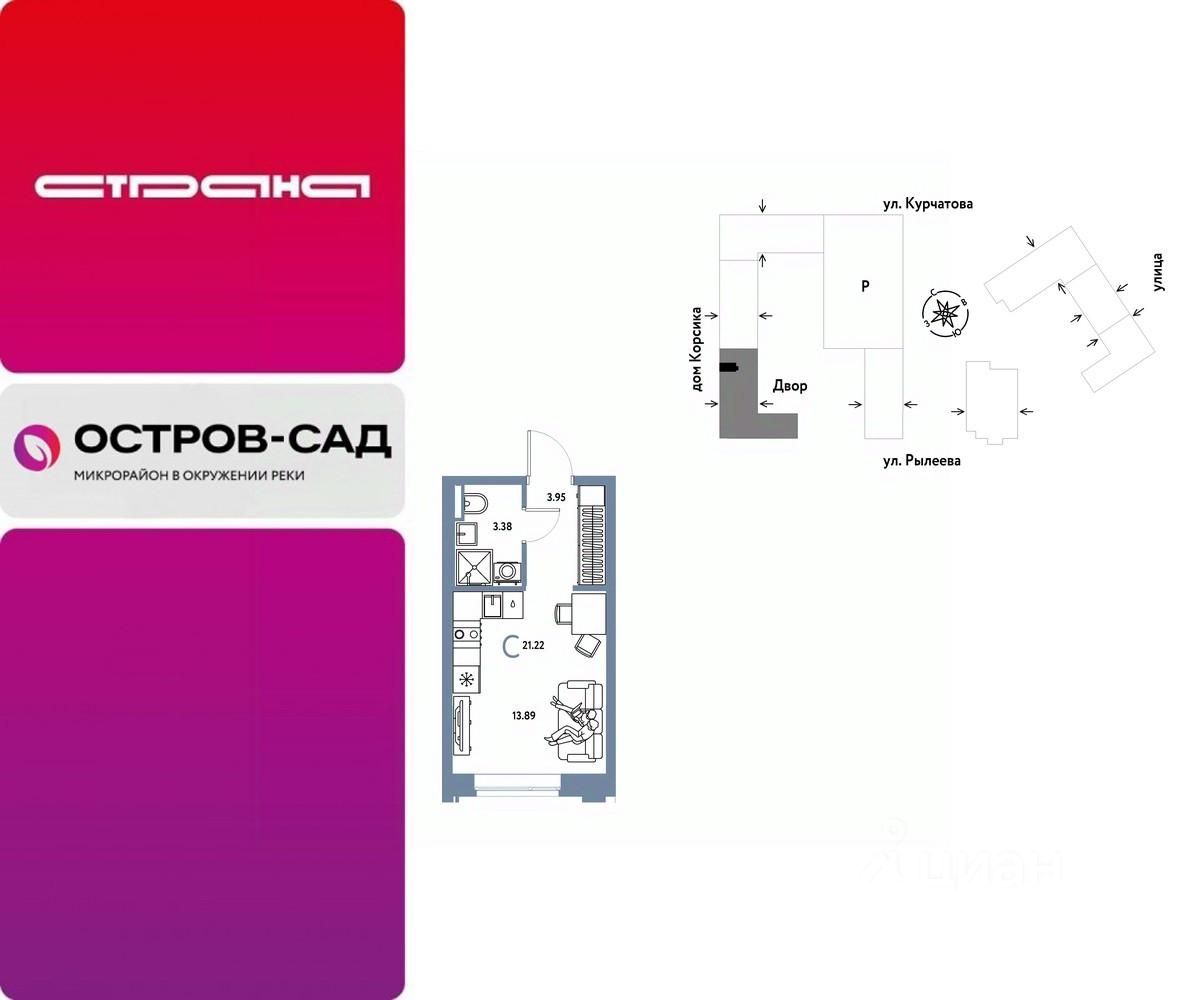 Продается 1комнатная квартира на 12 этаже от застройщика Страна Девелопмент. Площадь квартиры 21,22 кв. м.