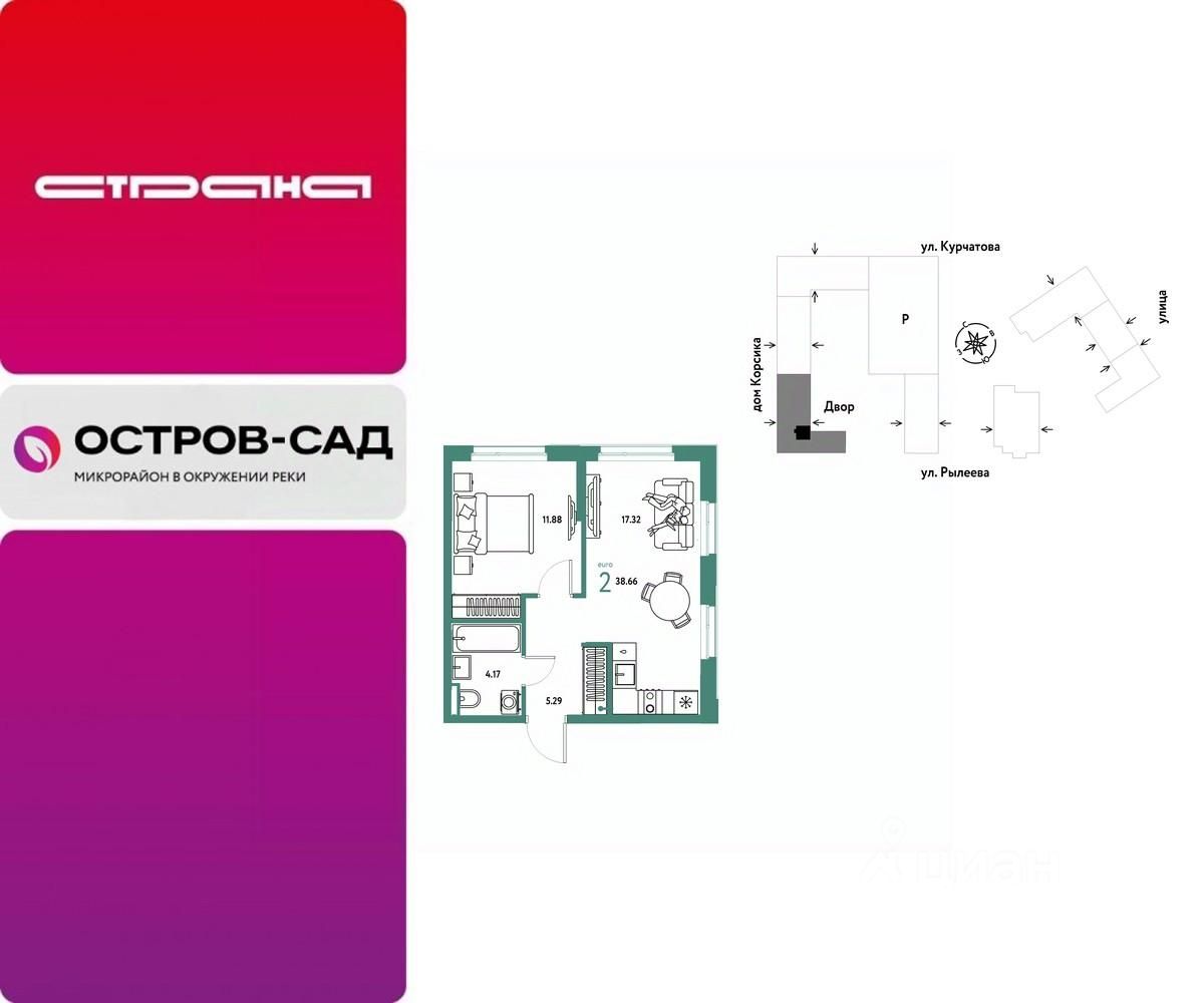 Продается 2комнатная квартира на 2 этаже от застройщика Страна Девелопмент. Площадь квартиры 38,66 кв. м.