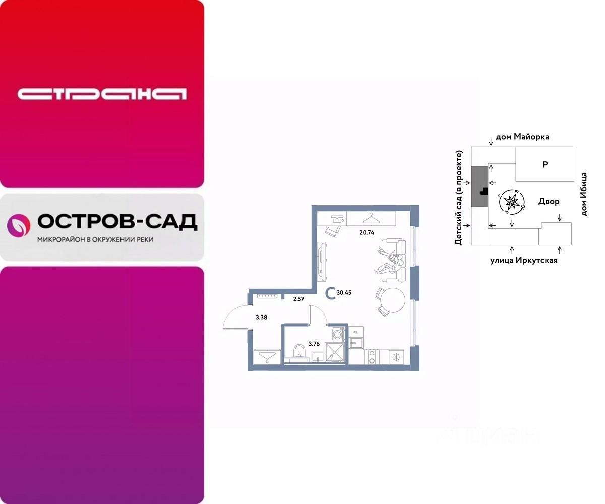 Продаётся студия в строящемся доме (Дом Тенерифе (ГП-2Я)), срок сдачи: IV-кв. 2027, общей площадью 30.45 кв.м., на 19 этаже. Новый жилой комплекс ''Остров-сад'' от Специализированного застройщика ''Страна. Коммунистическая'' расположен по адресу: г. Тюмень, по ул. Ярославская.
