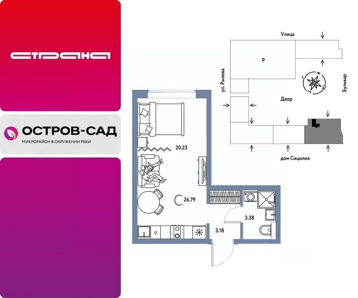 Продается 1комнатная квартира на 10 этаже от застройщика Страна Девелопмент. Площадь квартиры 26,79 кв. м.