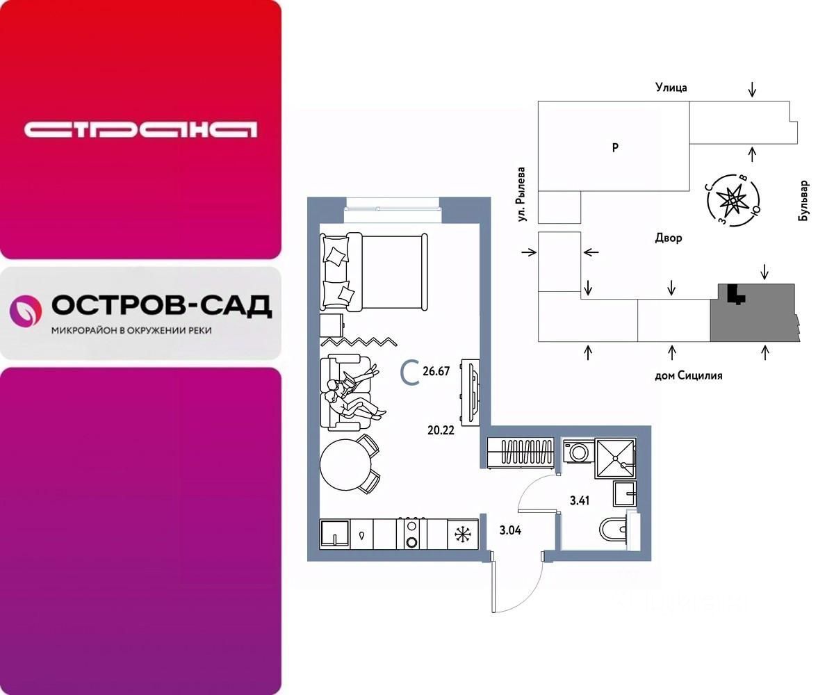 Продается 1комнатная квартира на 7 этаже от застройщика Страна Девелопмент. Площадь квартиры 26,67 кв. м.