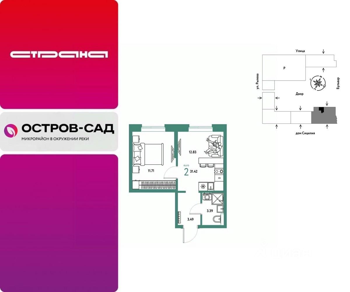 Продается 2комнатная квартира на 24 этаже от застройщика Страна Девелопмент. Площадь квартиры 31,42 кв. м.
