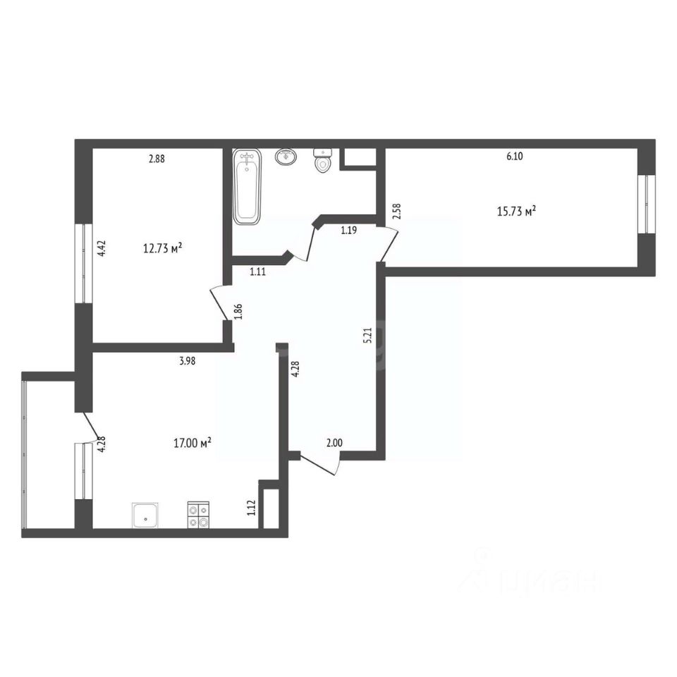 Продается квартира формата 2+ в ЖК ''Звездный городок''. Общая площадь составляет 62,4 м2.
