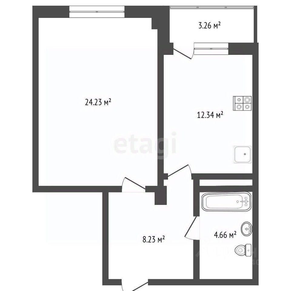 Функциональная планировка с помещениями правильной формы: просторная прихожая, светлые и объемные комната и кухня, совмещённый вместительный санузел.