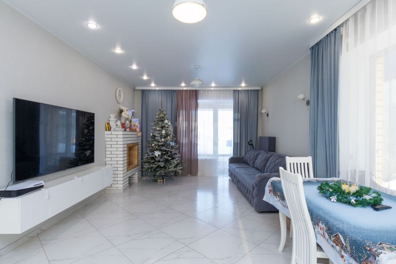 Продается современный дом площадью 107,7 м² на собственном участке, готовый к комфортному проживанию без дополнительных вложений. Объект отличается рациональной планировкой: три изолированные комнаты, совмещенный санузел и просторная кухня-гостиная 40 м² с встроенным камином, формирующая центр семейной жизни. Высота потолков 2,8 метра и отделка качественными материалами, включая керамогранит, создают ощущение простора и облегчают уборку. Инженерное оснащение обеспечивает автономность и экономичность: система теплого пола, собственная водоочистка, септик и оформленный газовый договор, что делает коммунальные расходы прогнозируемыми — в среднем 2000-4500 рублей за газ и около 2500 рублей за электричество ежемесячно.