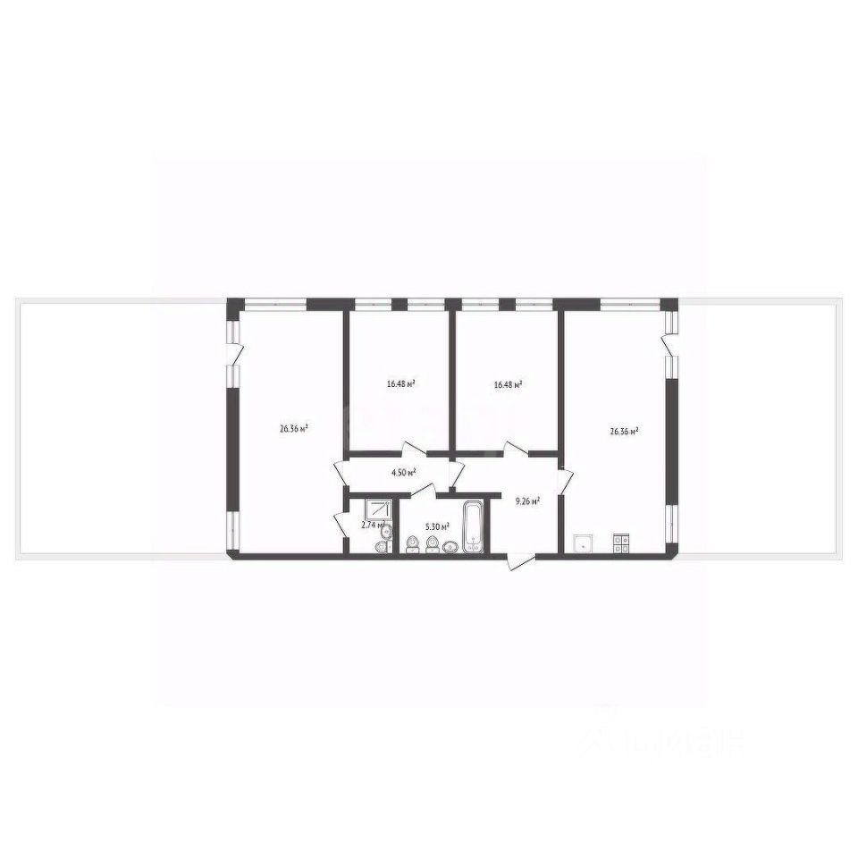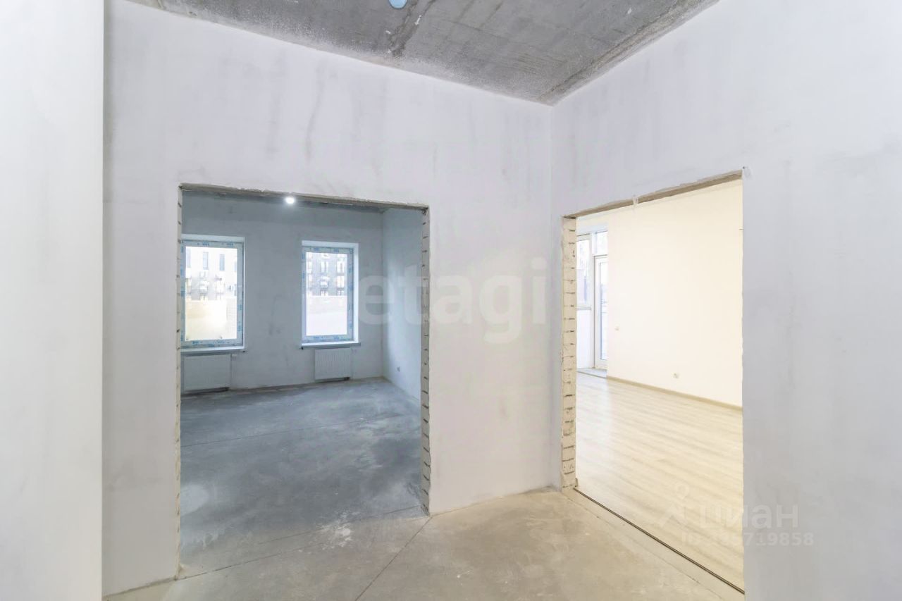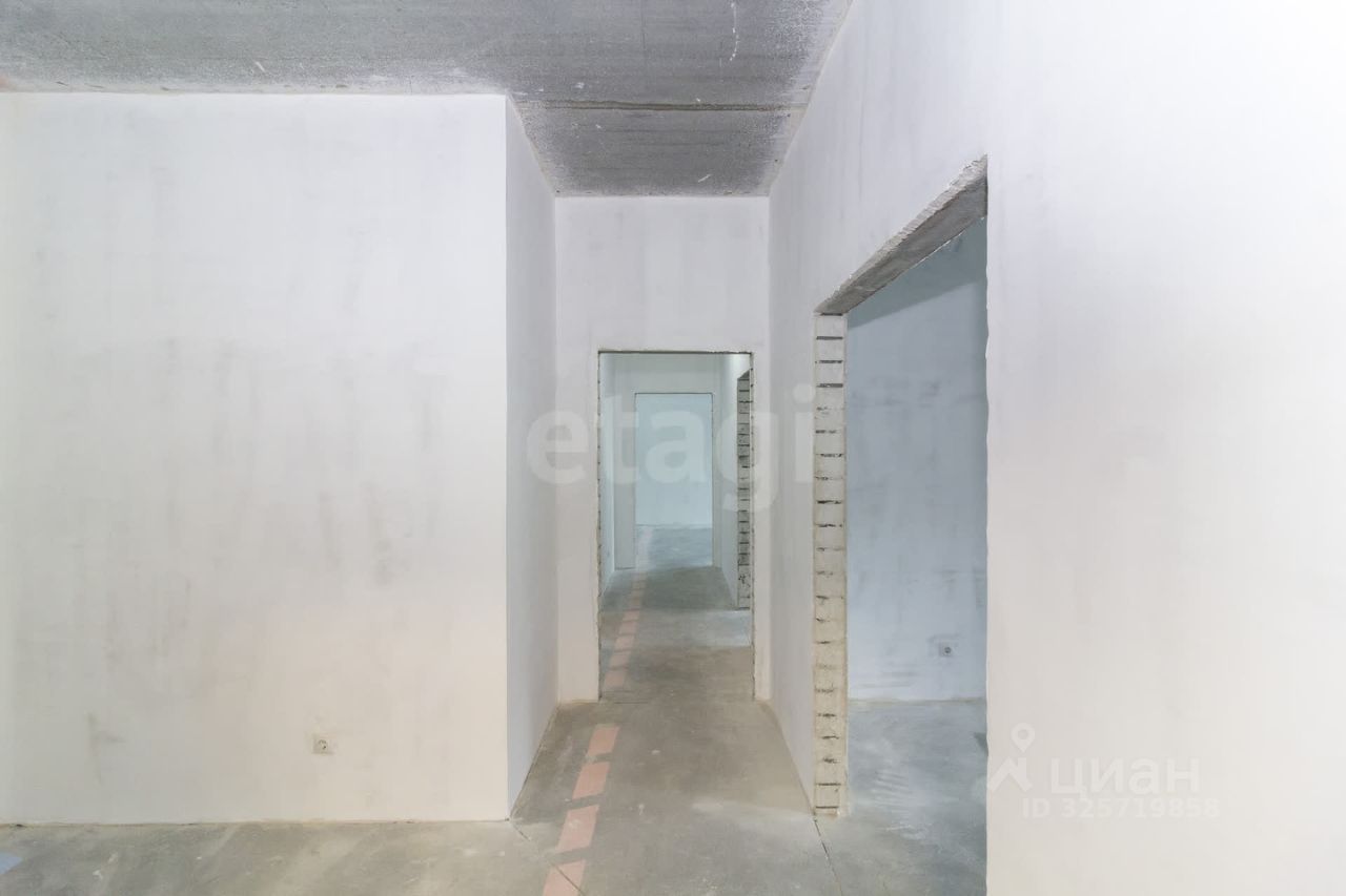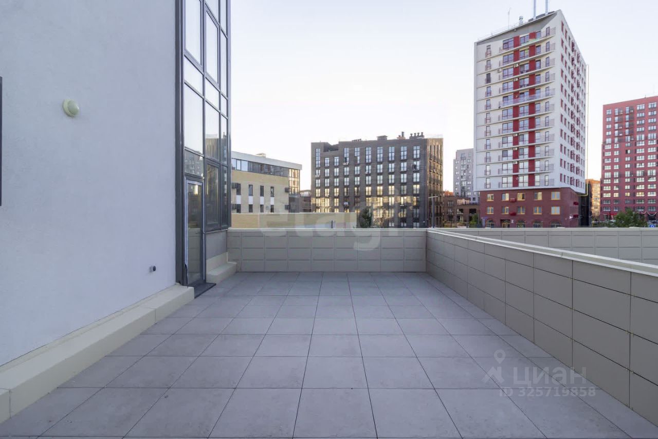 Квартира с двумя большими террасами , площадь обоих около 100 кв.м. Кухня- гостиная 26,36 кв.м. и три просторные спальни, одна из которых со своим сан.узлом. Есть еще один сан.узел 5,3 кв.м..Отделка улучшенная черновая, ровный пол, стены под маяк. Окна выходят во двор..
