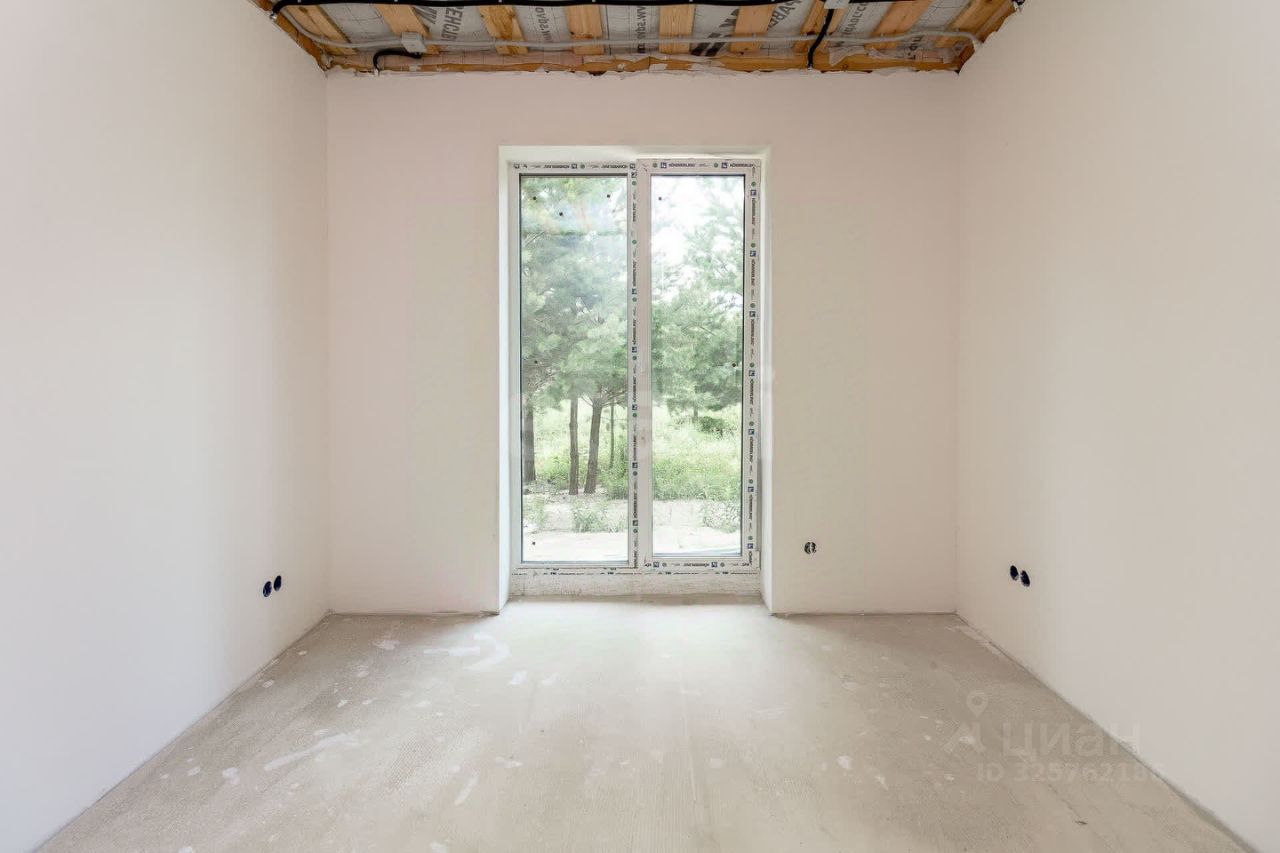 В доме огромная кухня-гостиная площадью 32 м2 с панорамными окнами и выходом на бетонную большую террасу. Для удобство размещения семьи с детьми здесь есть три изолированные спальни. Большой санузел площадью 6 м2 позволит разместить здесь ванну, душевую, прачечную и другие удобства. Есть также и отдельное помещение для кладовой или гардеробной. В дом заведены и функционируют все коммуникации: отопление от электрического котла - теплый пол и радиаторы, вода скважина, канализация переливной септик. У дома выведен газовый стояк.