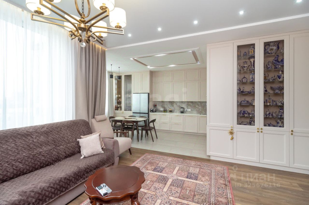 Квартира на 12 этаже в жилом комплексе ''Европейский берег'' , площадью 116 кв. м с учетом просторной лоджии, предлагает продуманное пространство формата 3+ с дизайнерским ремонтом, в основе которого — экологичность и безопасность. Применены европейские материалы, обеспечивающие здоровый микроклимат.