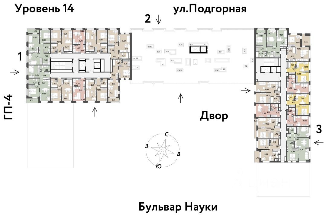 Преимущества •Тематический бульвар объединяет дома и закрытые дворы квартала в единую экосистему: зелень, перголы для отдыха, детские и спортивные площадки. По вечерам бульвар преображается: освещение создаёт уютную атмосферу. •Новый детский сад рядом, который появится в 2026 году прямо в одном из корпусов комплекса. В нём выделено 150 мест для малышей. •Во дворах нет машин, шума, выхлопных газов и посторонних людей. Всё пространство разделено на зоны по интересам и возрастам. Для детей — игровые площадки из эко-материалов и мягкая защита от падений. Для взрослых — зоны отдыха, воркаут-площадки и тропинки для неспешных прогулок.