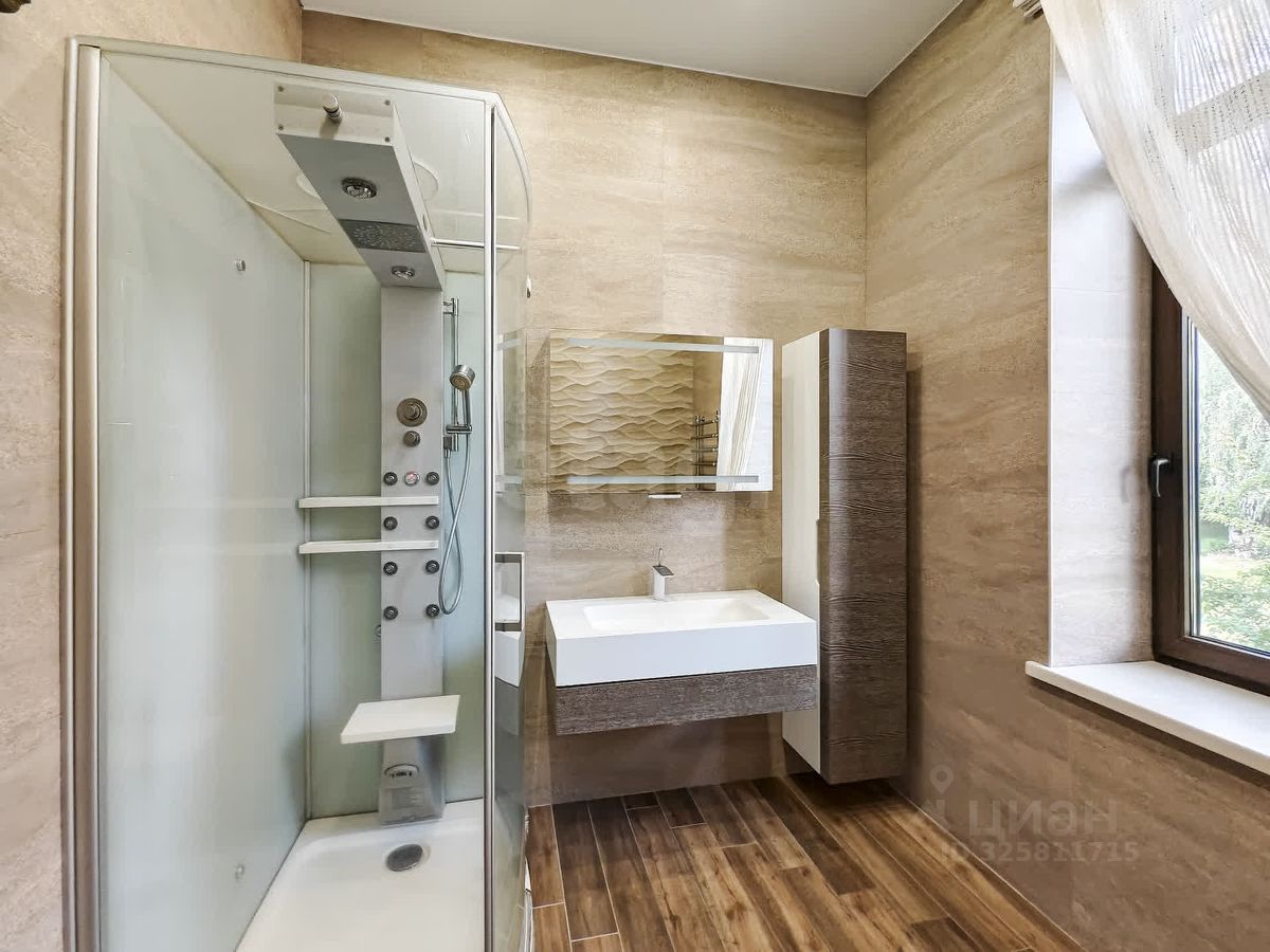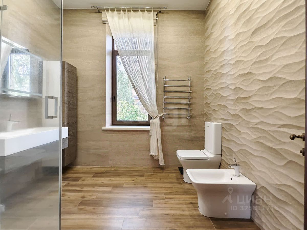 Немного подробнее о каждом обекте: * Основной жилой дом - одноэтажный со вторым светом (высота потолков 3.2, в коньке 5.2), с огромными витражными окнами. Дом построен на монолитной, армированной плите, стены из керамзитоблоков и облицован декоративным камнем снаружи. В доме четыре просторные спальни/детские (36,22,30,30 кв/м), два санузла, джакузи, большая кухня-гостиная (79 кв/м), прачечная, гардеробная, прихожая. Профессиональная система вентилирования дома с проектом, система кондиционирования, многоступенчатая система очистки воды, две скважины. Канализация - септик - 40 куб. Видео-домофон. В кухне-гостиной классная итальянская мебель из натурального массива - Stossa, бытовая техника премиум-сегмента Neff (плита 90 см на 5 конфорок, встроенный духовой шкаф и микроволновая печь, встроенная кофеваррка, посудомоечная машина и встроенный подогрев посуды). Осветительные приборы пр-ва Италии. Добротные двери - массив. Достойная сантехника и сан.фаянс. На полу паркет. * Гостевой дом-баня с большим мозаичным бассейном 7*5м . Большая гостиная , кухня так же массив производства Италии со встроенной бытовой техникой, с мангальной зоной на дровах с витражным остеклением и большой комнатой отдыха. * Отдельно стоящая котельная, в ней установлены газовые котлы и резервный дизельный генератор. Электричество 380. * Большой гараж на две машины со вторым тёплым, жилым этажом (где по-сути расположена, двухкомнатная квартира со всеми удобствами). В подвале гаража - погреб для хранения консервации.
