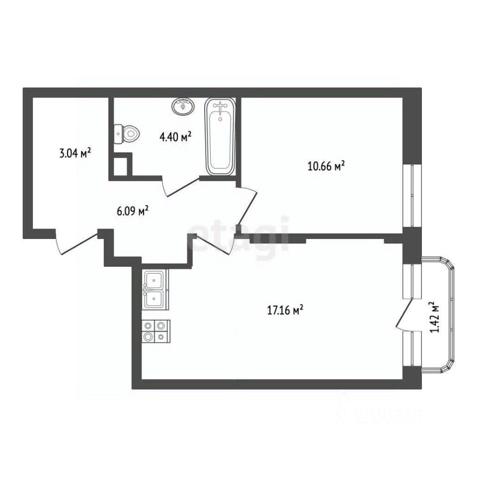 Уважаемые покупатели! Продается 1-комнатная квартира формата 1+ площадью 41,4 кв.м., расположенная на 9 этаже 9-этажного дома.