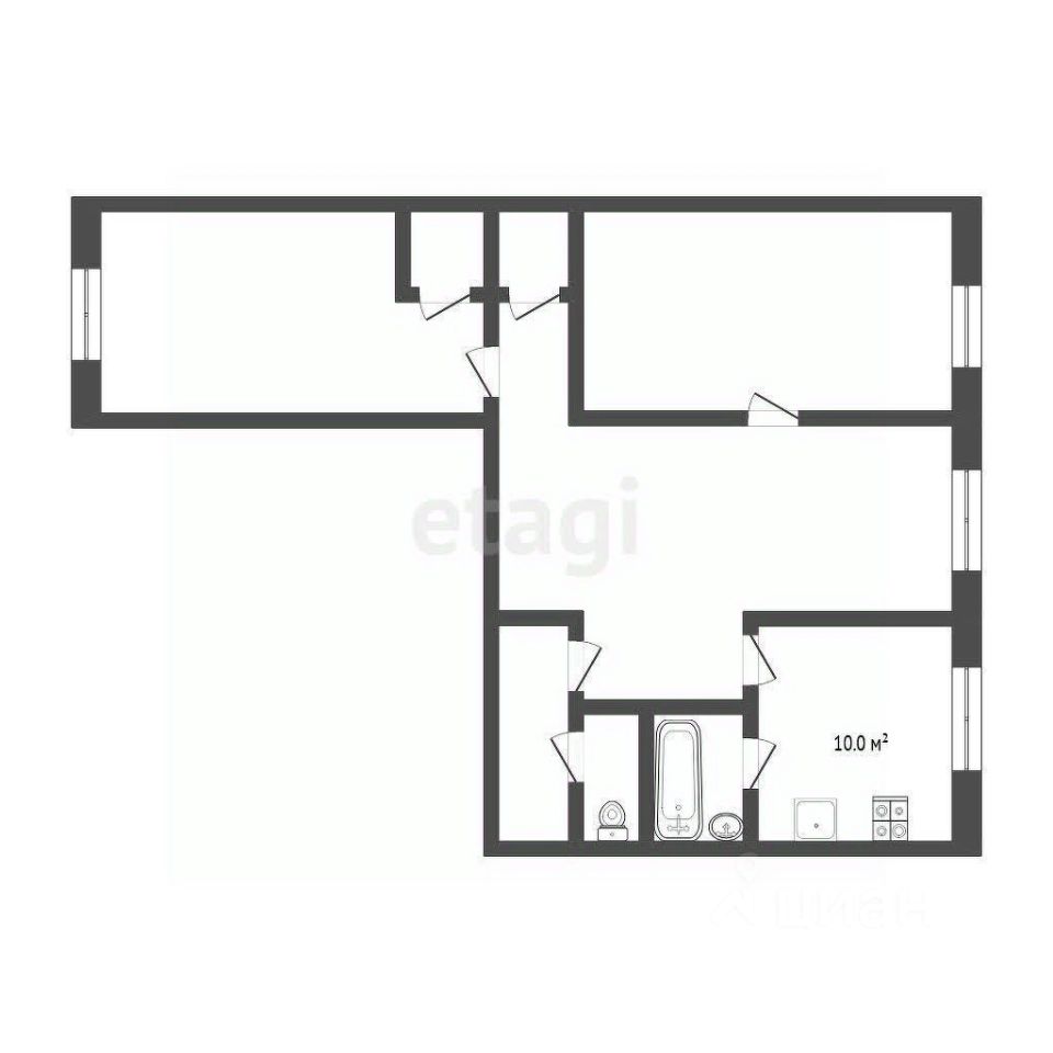 Планировка включает две изолированные комнаты, и большую комнату-зал, кухню и раздельный санузел, что обеспечивает комфортное проживание для семьи или возможность зонирования пространства под рабочие нужды.