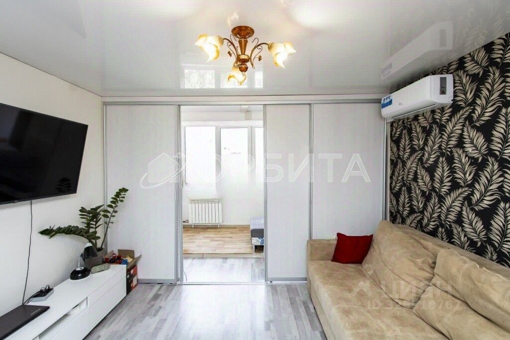 Большая комната - гостиная. Разделена раздвижной стеной, что позволяет зонировать спальню и уютный кабинет. Новый огромный шкаф-купе, диван - в подарок.