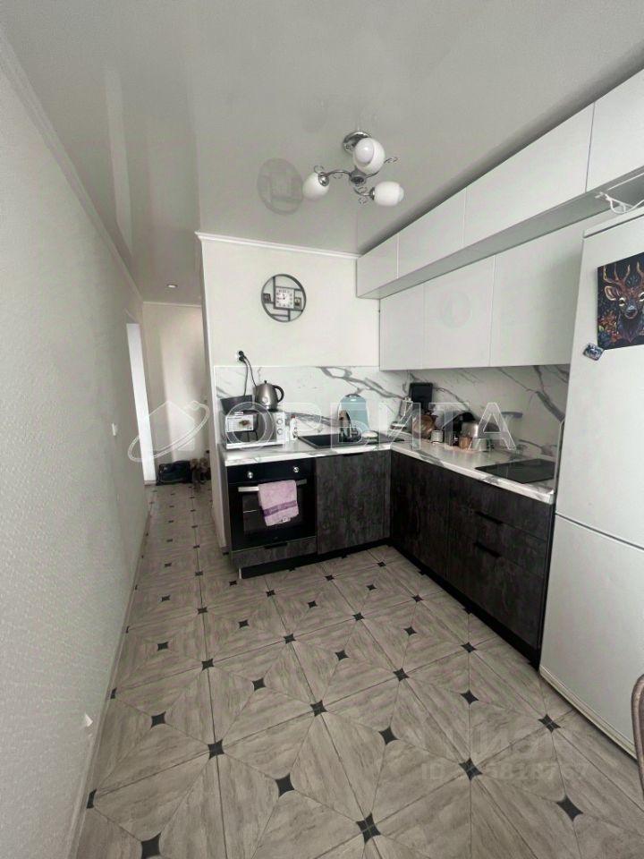 Просторная кухня вмещает в себя обеденную зону, зоны хранения и готовки. Новый качественный гарнитур и холодильник - в подарок.
