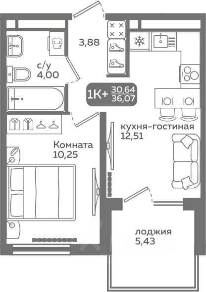 Прямая продажа от застройщика! Продается однокомнатная квартира в строящемся ЖК ''Меридиан Слобода'', срок сдачи: I-кв. 2027, общей площадью 30.64 м², на 5 этаже из 21. Площадь кухни — 12.51 м².