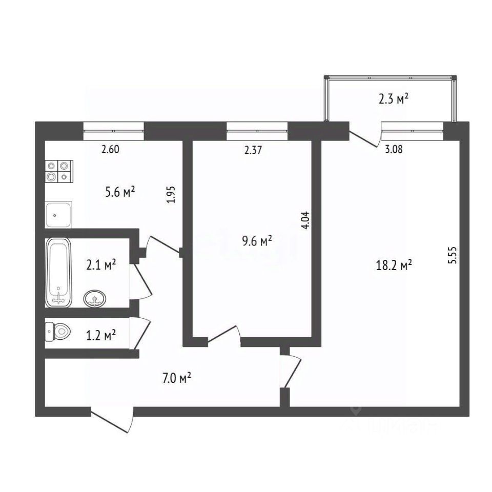 Продается 2-ком.кв. Площадь 43,7 кв.м, На 5-м этаже.