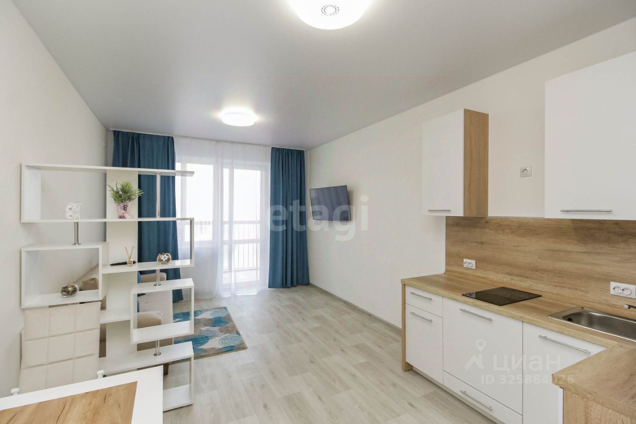 ЖК ''РИТМЫ'' загородная жизнь вблизи города - это реальность! Квартира формата студия. Выполнен современный ремонт. Квартира полностью с мебель и техникой- кухонный гарнитур с варочной поверхностью, диван, стол, стулья, телевизор, холодильник, стиральная машина. Во дворе детские площадки для разных возрастных групп, а также перголы для отдыха в тени. Архитектурные решения и природа обеспечивают гармонию окружающего мира. Транспортная доступность включает в себя не только удобный автомобильный въезд, но и наличие автобусных остановок. Недалеко ТРЦ СитиМолл, 10 минут на автомобиле.