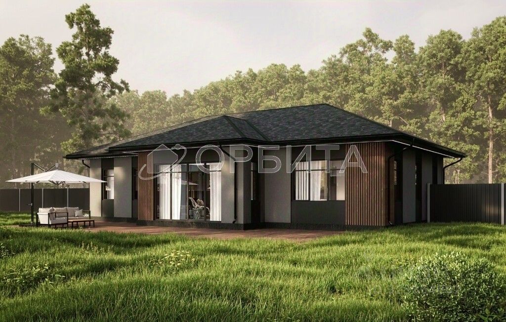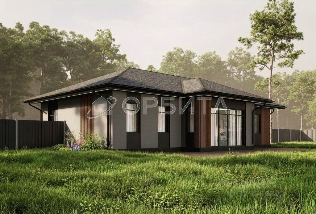 Предлагается к продаже современный одноэтажный дом площадью 135.27 м² на собственном участке 14.65 соток в престижном проекте ''Кипрея на холмах'' под Тюменью.