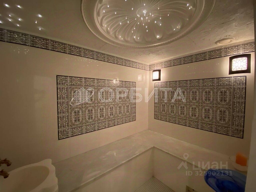 в цоколе расположен гараж на 2 машины 35 м2, бассейна с комнатой отдыха 46м2 и сауна с хамамом и джакузи.