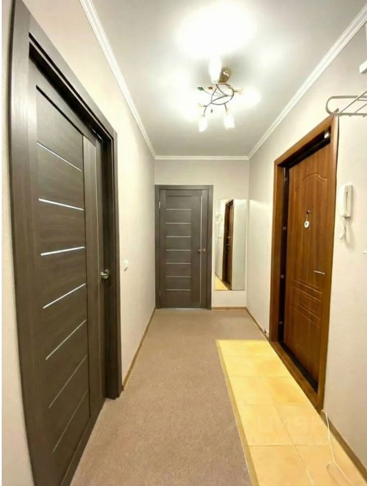 Квартира с обновленным ремонтом, есть мебель и техника: в гостиной комнате есть диван, большой шкаф-купе, комод, компьютерный стол и телевизор, в спальне есть кровать двуспальная, стол компьютерный и журнальный столик, на кухне есть кухонный гарнитур с электрической плитой 4 конфорки и духовым шкафом, холодильник, обеденный стол, в коридоре установлена стиральная машина. В квартире проведено кабельное телевидение. Квартира сдается арендаторам без животных.