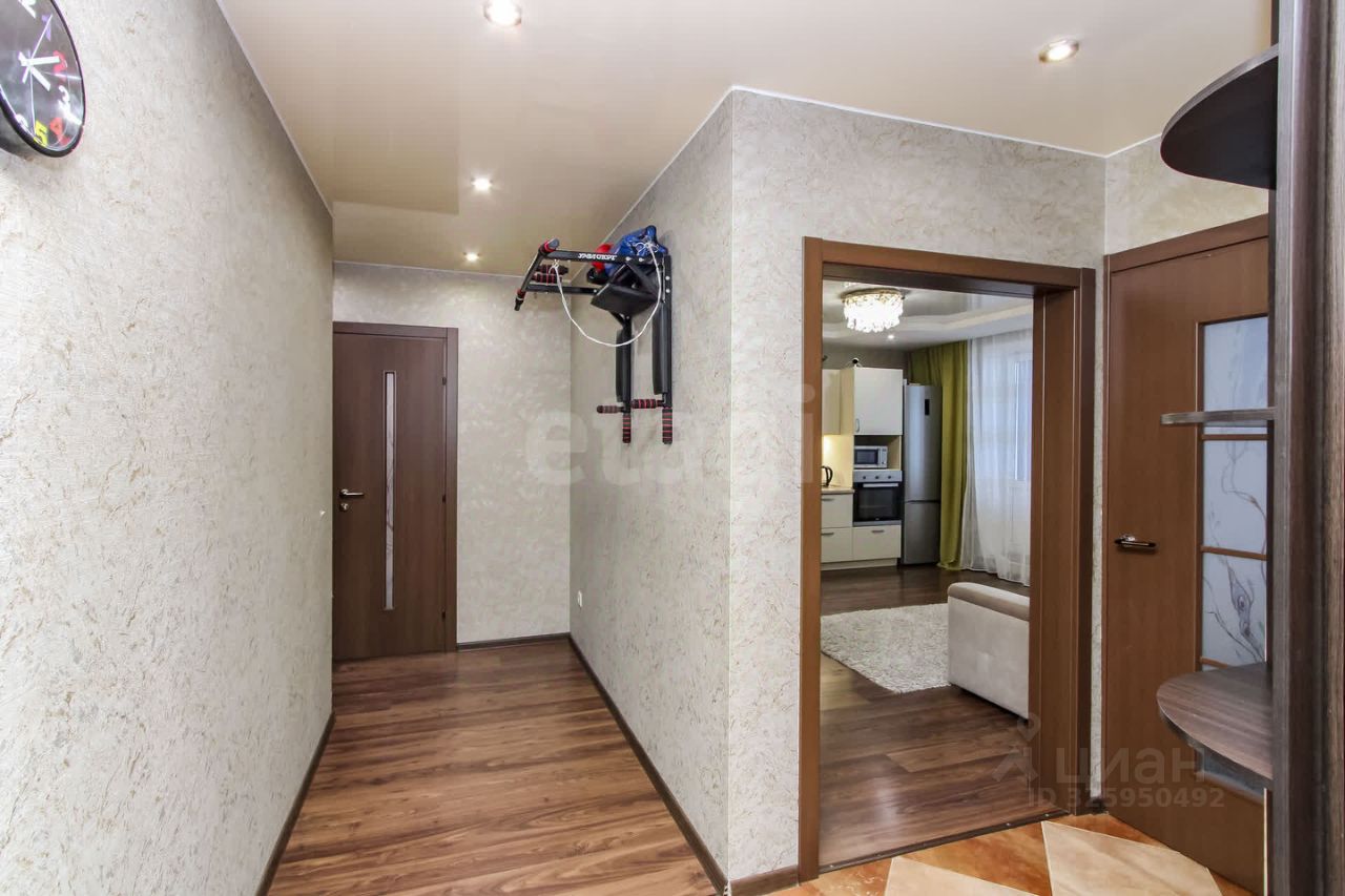 Продам двухкомнатную квартиру с ремонтом! В квартире функциональная планировка: кухня-гостиная правильной квадратной формы, с выходом на остеклённую лоджию, 2 изолированный спальни, разнесённые на 2 стороны, просторный совмещённый сан.узел. В квартире выполнен современный ремонт, установлен кухонный гарнитур, системы хранения в коридоре и спальне. При продаже остаётся практически вся мебель и техника, квартира формата - ''заезжай - живи''. В доме есть технический этаж, фактически квартира расположена не на последнем этаже. Инфраструктура района полностью развита, в шаговой доступности множество магазинов, остановки общественного транспорта, фитнес-клубы, школа, детский сады, поликлиника. Также возле дома открыли новый прогулочный бульвар им. Ершова. Юридически чистая сделка, молодой собственник!