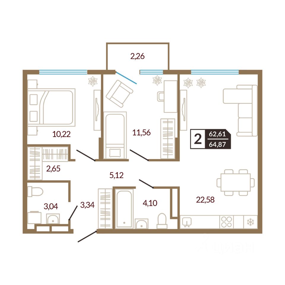 продам 2-к, Василия Шамова, 47 300 000 ₽