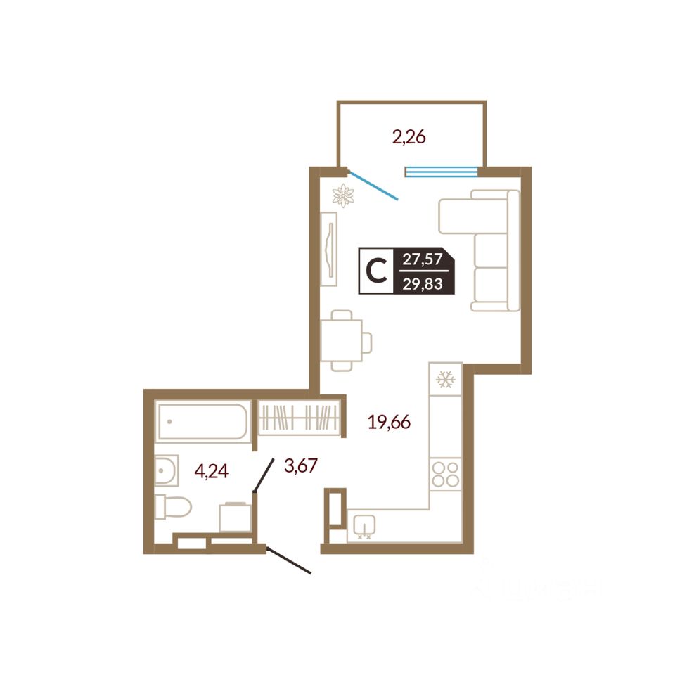 продам 1-к, Василия Шамова, 44 150 000 ₽