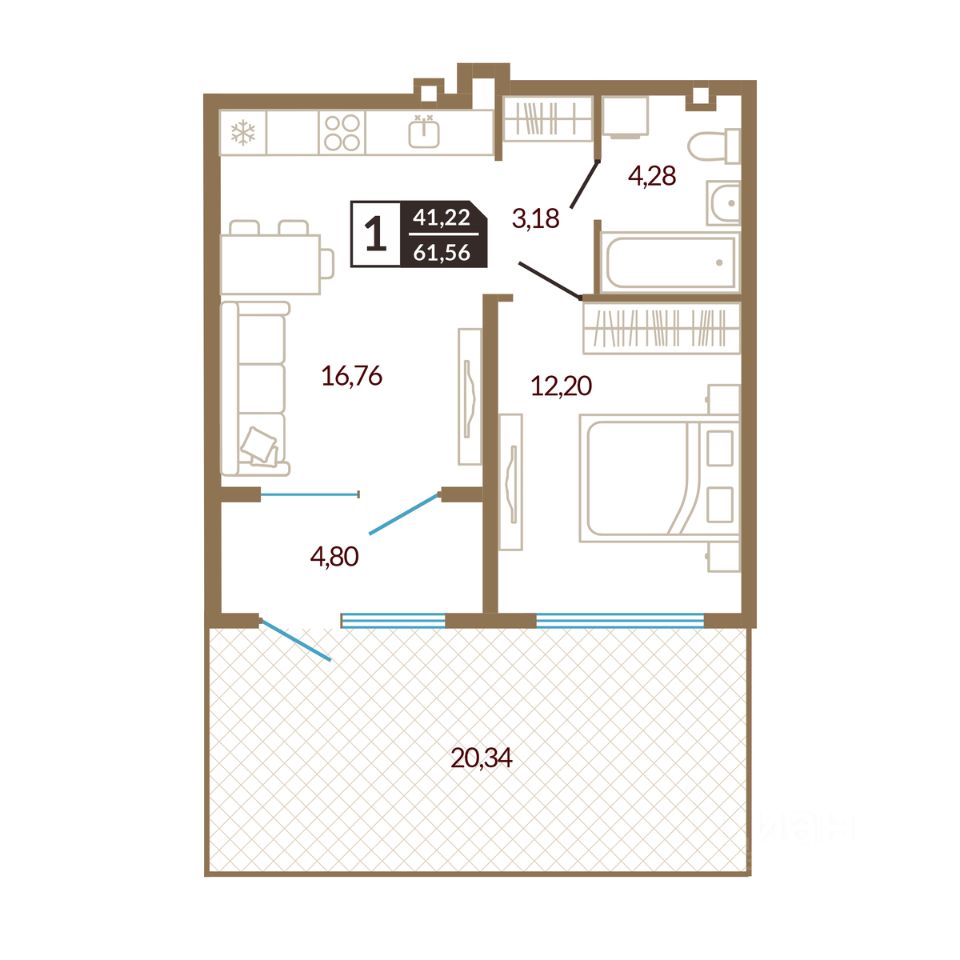 продам 1-к, Василия Шамова, 46 300 000 ₽