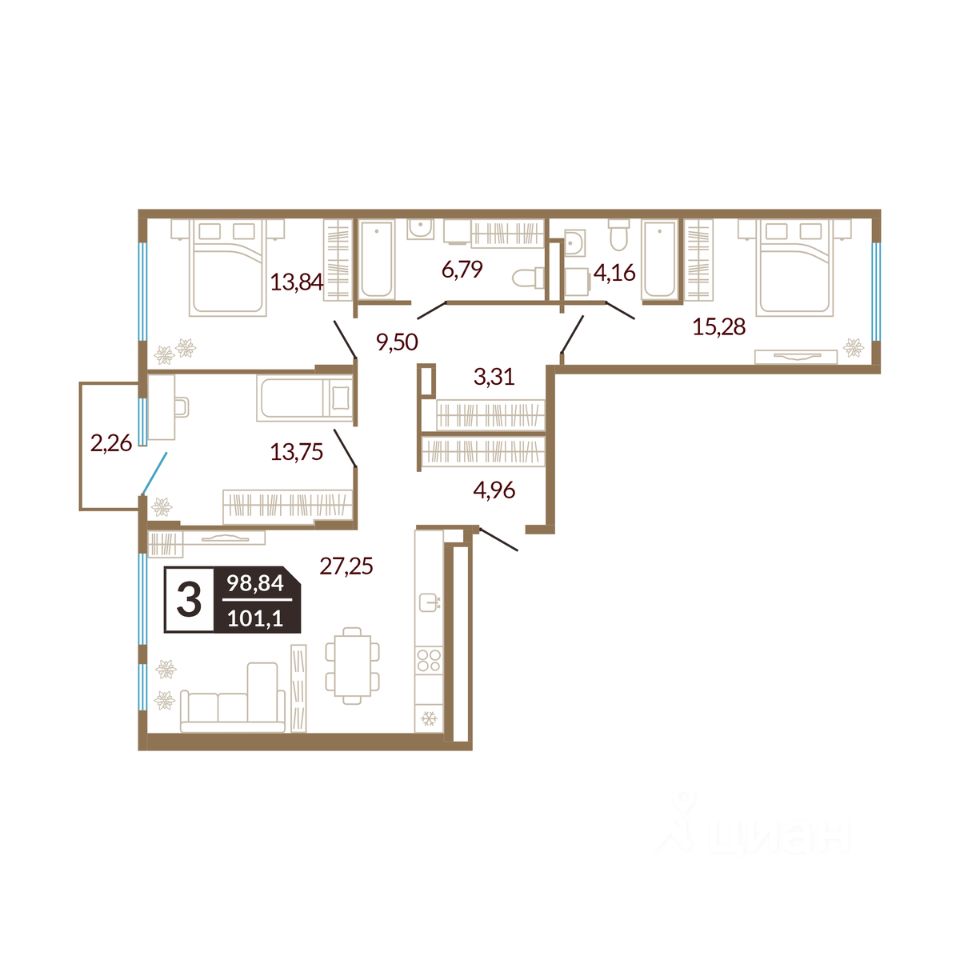 продам 3-к, Сергея Свиридова, 9 корп. 19 800 000 ₽