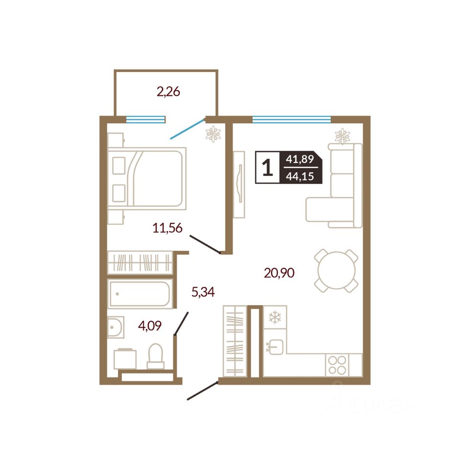 продам 1-к, Василия Шамова, 45 750 000 ₽