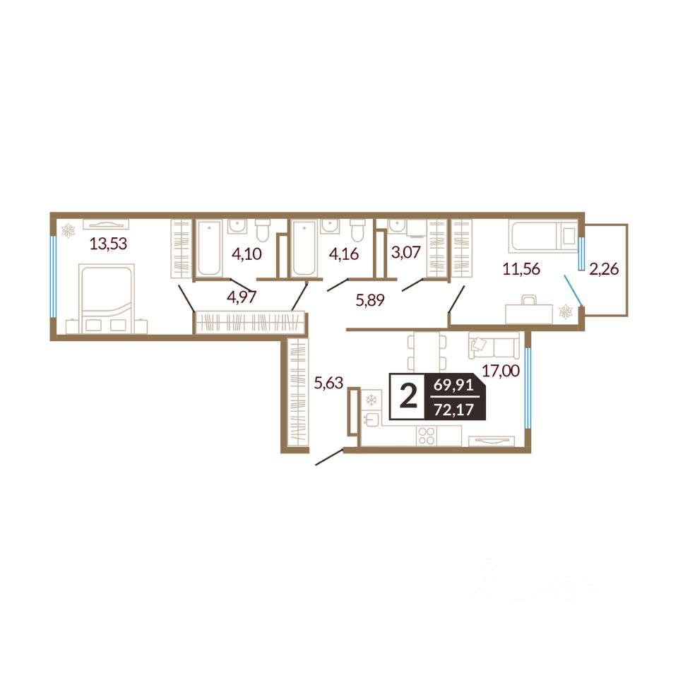 продам 2-к, Сергея Свиридова, 9 корп. 18 150 000 ₽