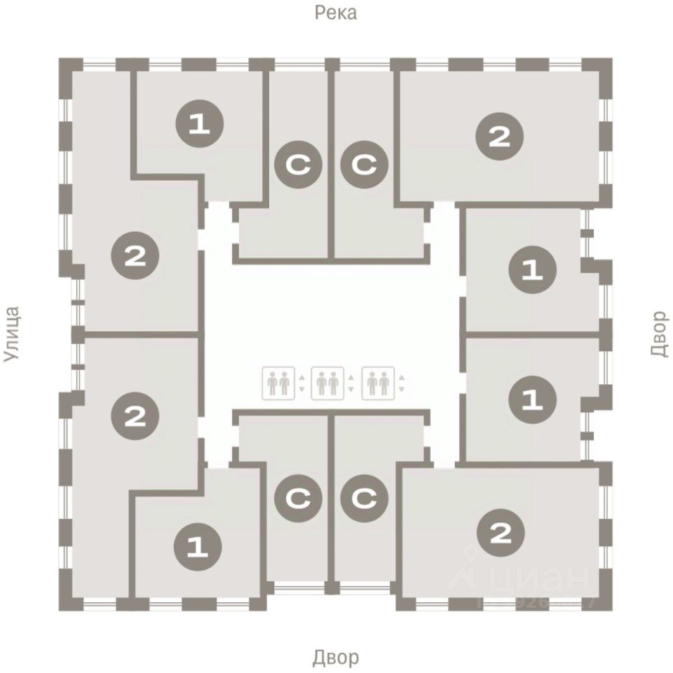 По мастер-плану здесь будет восемь домов. Ядро застройки составляют замкнутые кварталы переменной этажности. Их высотность понижается по мере приближения к реке. На углах участка мы разместили башни-доминанты.