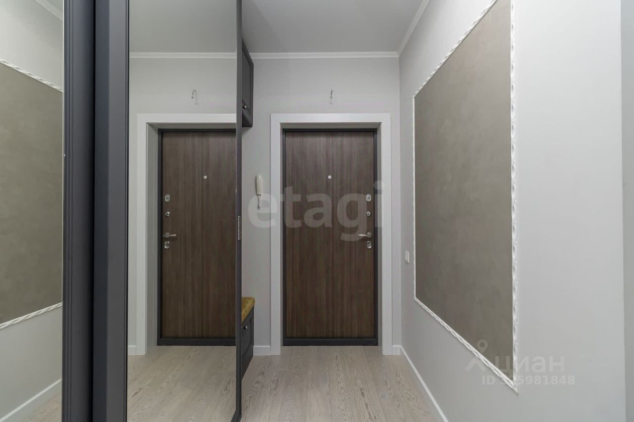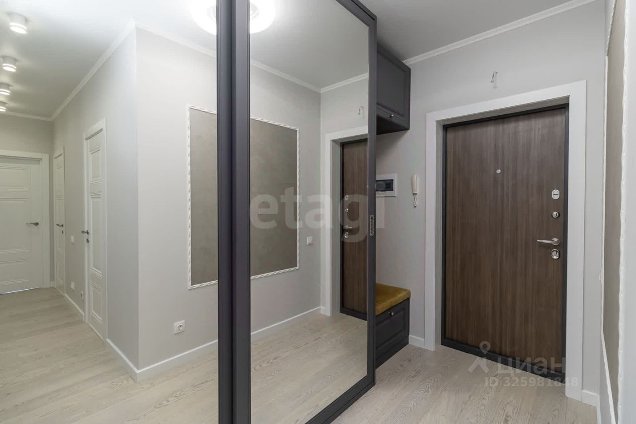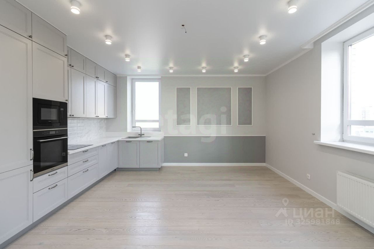 на полу — паркетная доска из шпона дуба, стены выровнены и окрашены, натяжные потолки, санузел отделан кафелем, установлена душевая кабина, в прихожей — встроенный шкаф для хранения, кухня полностью укомплектована бытовой техникой. Квартира не требует вложений — формат ''заехал и живёшь''.