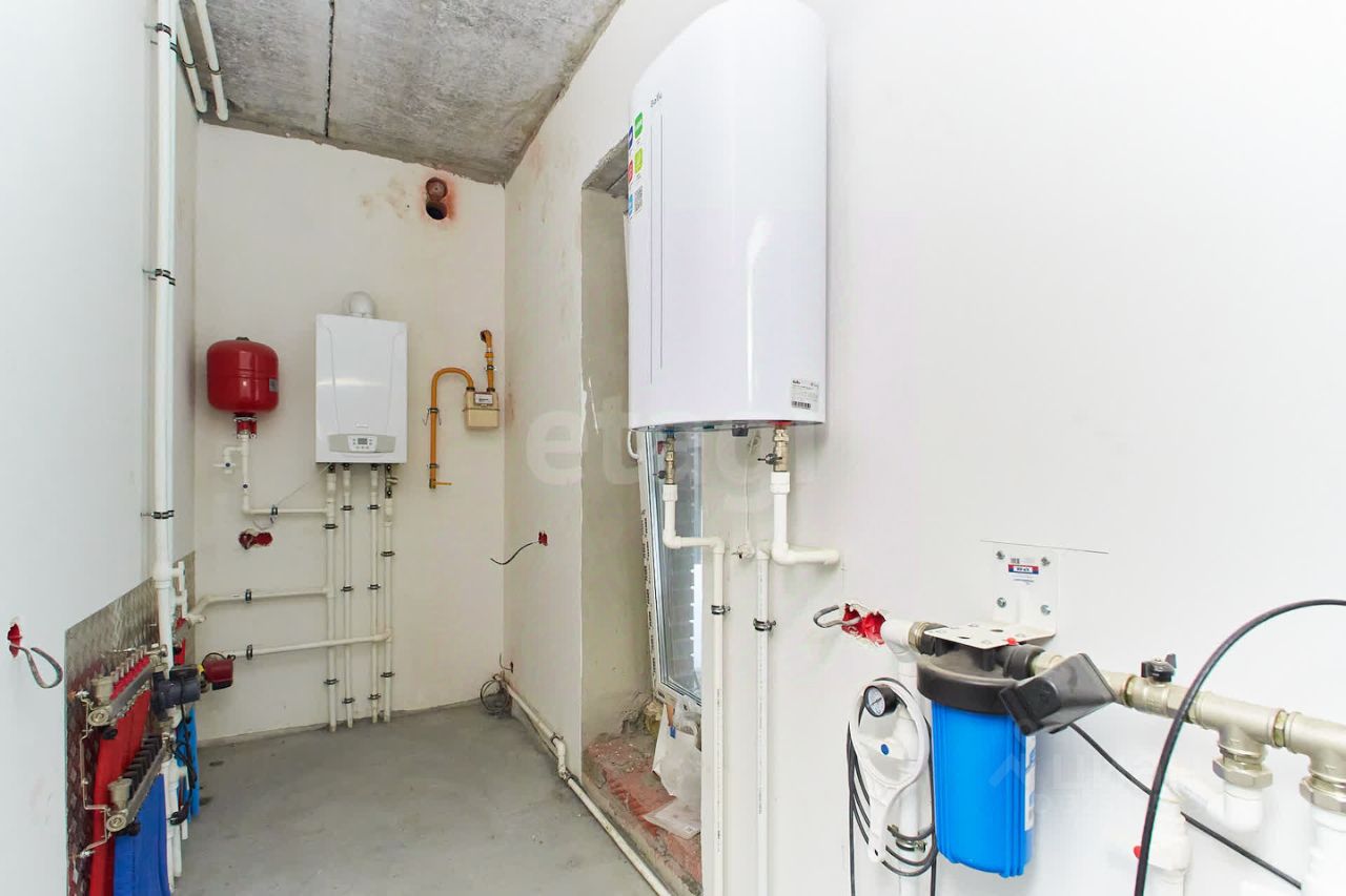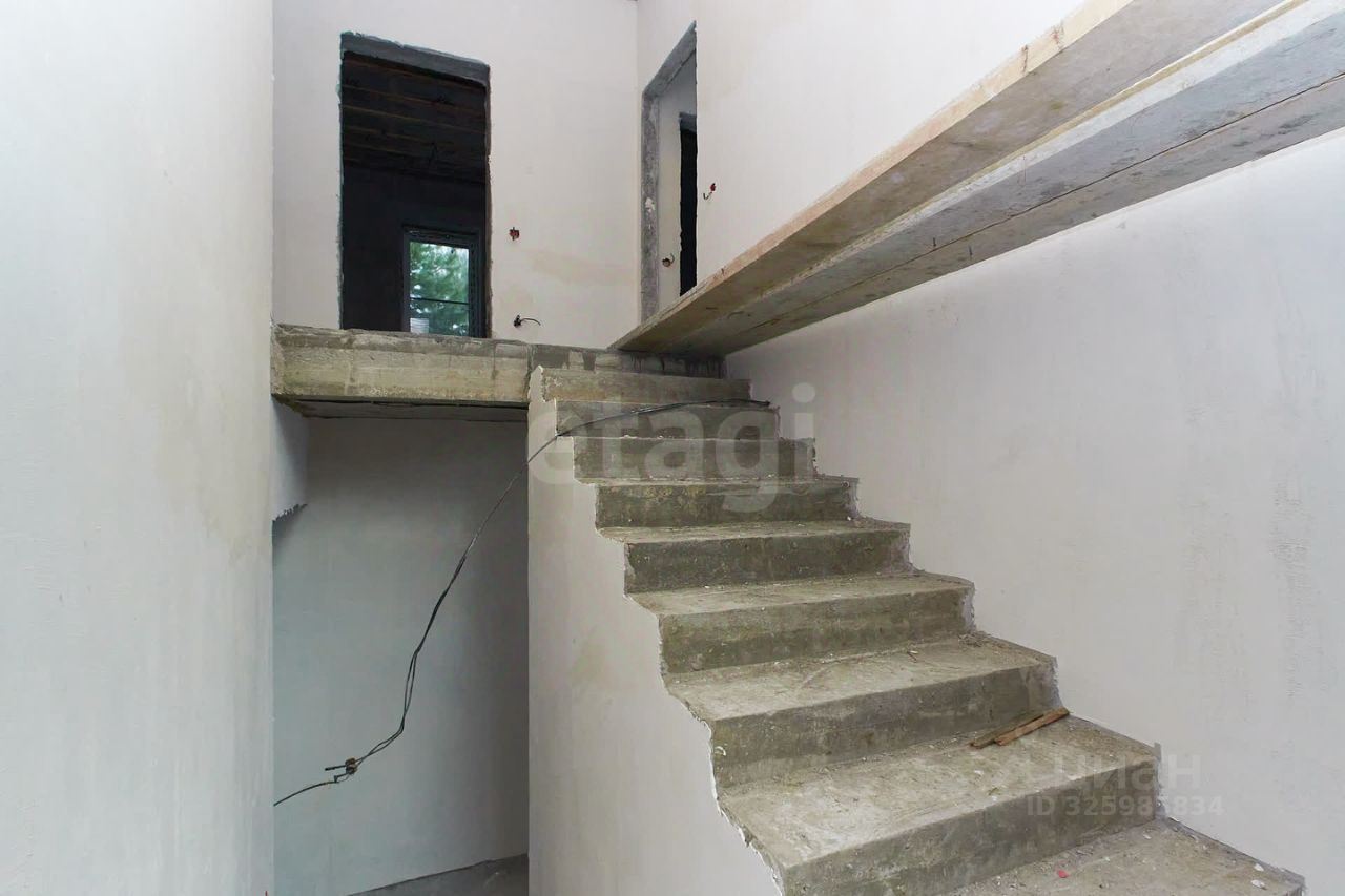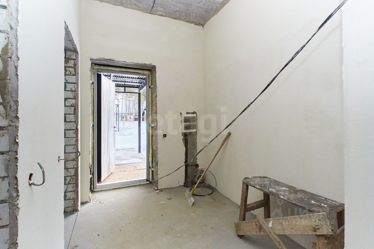 Двухэтажный дом площадью 180 м² расположен в селе Перевалово на участке 9 соток. Удаленность от центра Тюмени составляет 20 минут на автомобиле, что обеспечивает баланс между тишиной загородной жизни и доступностью городской инфраструктуры. Район отличается развитой социальной и торговой сетью. Здание построено из керамзитобетонных блоков с облицовочным кирпичом, все инженерные коммуникации подведены. Планировка включает четыре спальни, просторную гостиную со вторым светом и большими окнами