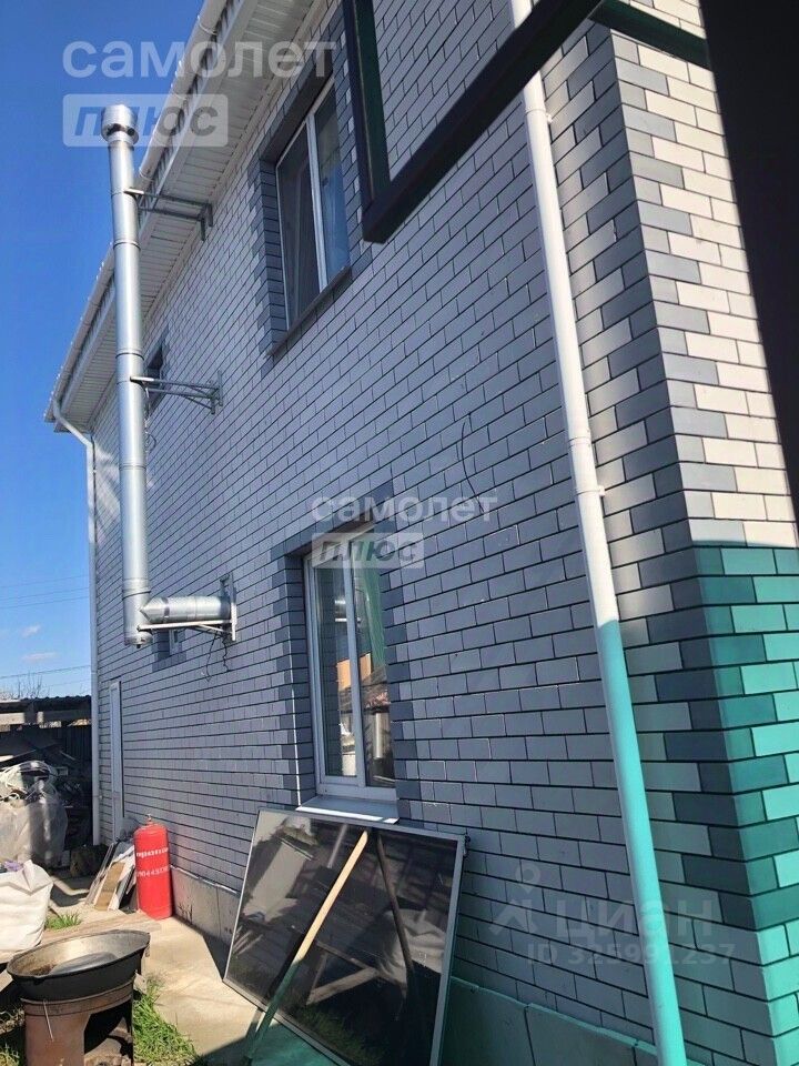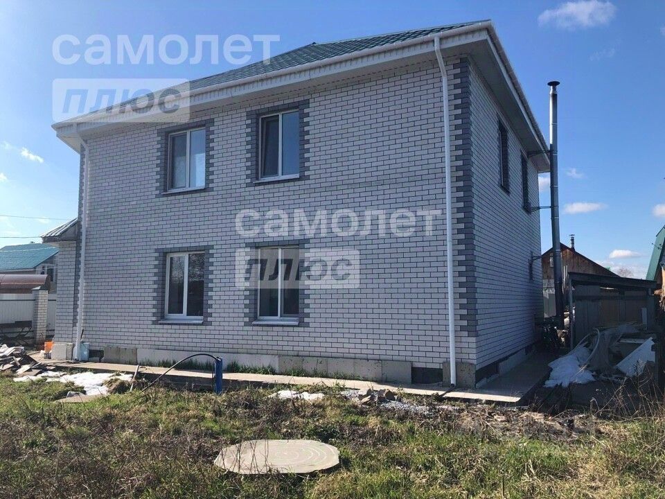 Фундамент - винтовые сваи, стены из керамзитоблоков, утеплён, снаружи облицован кирпичом, покрытие - металлочерепица. В доме оборудован камин. Внутри выполнен ремонт: ламинат на полу, обои на стенах, гипсокартонный потолок со встроенными светильниками, пластиковые окна. Частично мебелирован. Установлена лестница, два санузла - на 1 и 2 этажах.