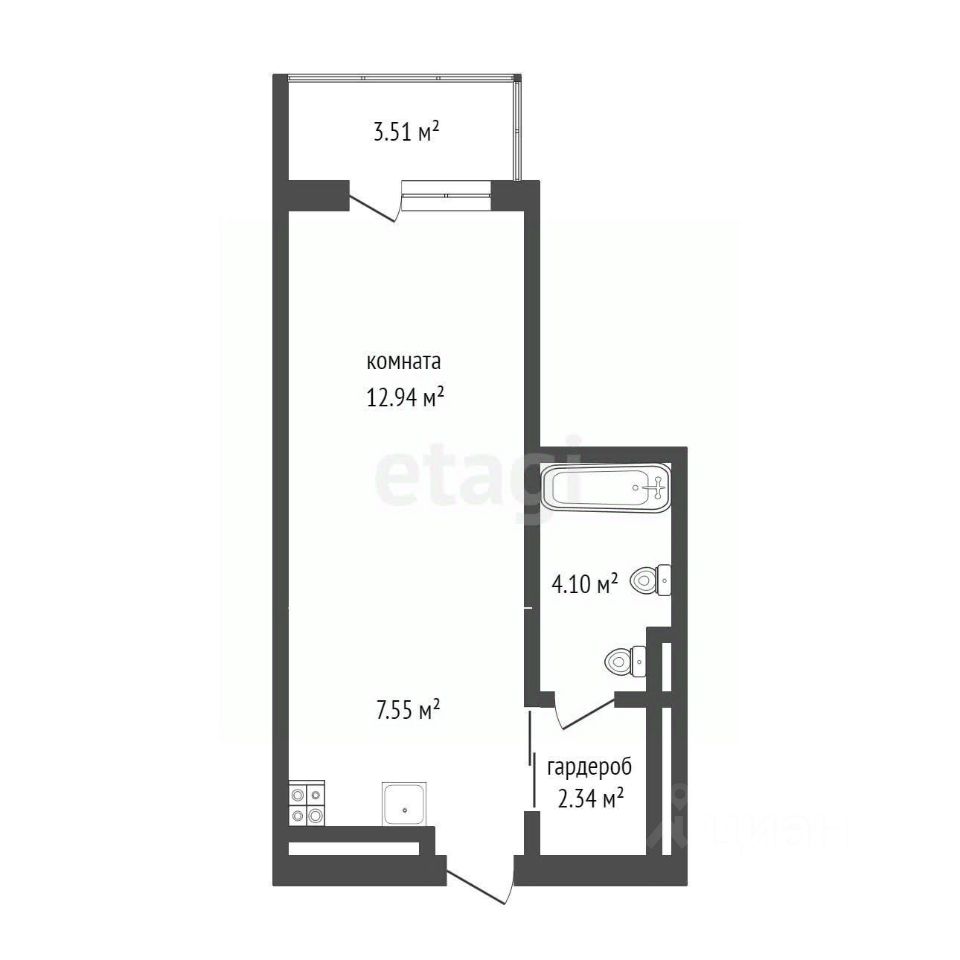 Общая S 30.44 м2, S без балкона 27 м2 - хорошая квадратура, студия: жилая комната 13 м2, кухня 7,5 м2, санузел совмещенный 4.1 м2, гардероб 2.3 м2 - функциональная планировка, таких квартир крайне мало, расположена на 4 этаже в 7-ми этажном новом доме - невысокая этажность! видовая: с балкона справа - вид на реку, напротив - красивый дом, справа - центральная часть города, будущий бульвар.
