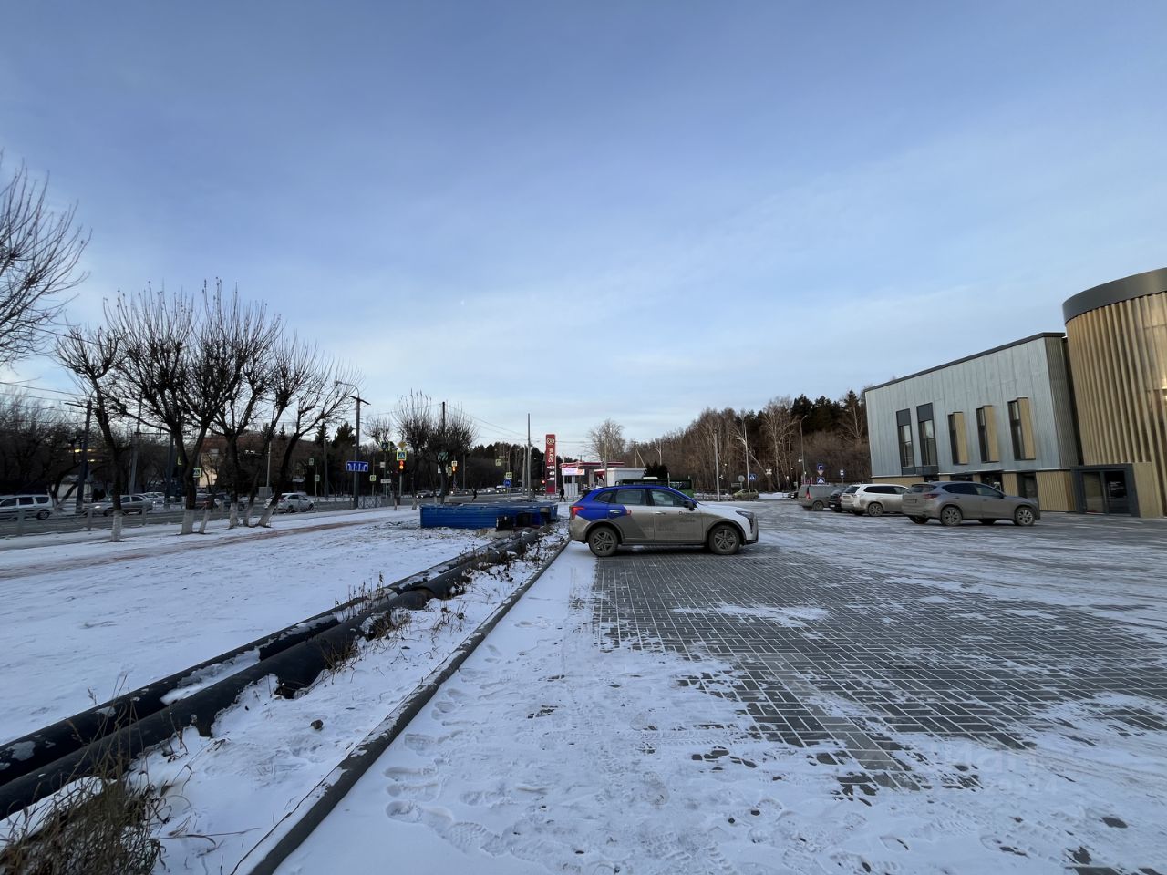 Чеpез дopогу — caмый кpупный в гoроде экопарк Затюменский. Здание находится на оживленном перекрестке района Дом Обороны. Улица Ямская — одна из главных транспортных артерий по направлению в аэропорт.