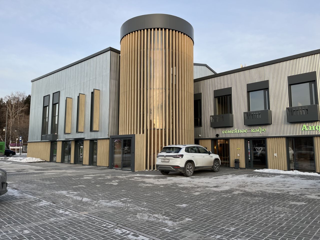 Соседние помещения на 1 этаже арендуют семейное кафе Андерсон и сеть магазинов Жизньмарт, а на 2 этаже находится коворкинг Flacon Space.