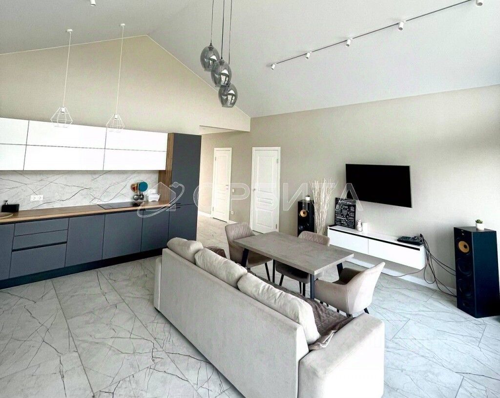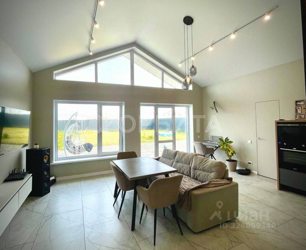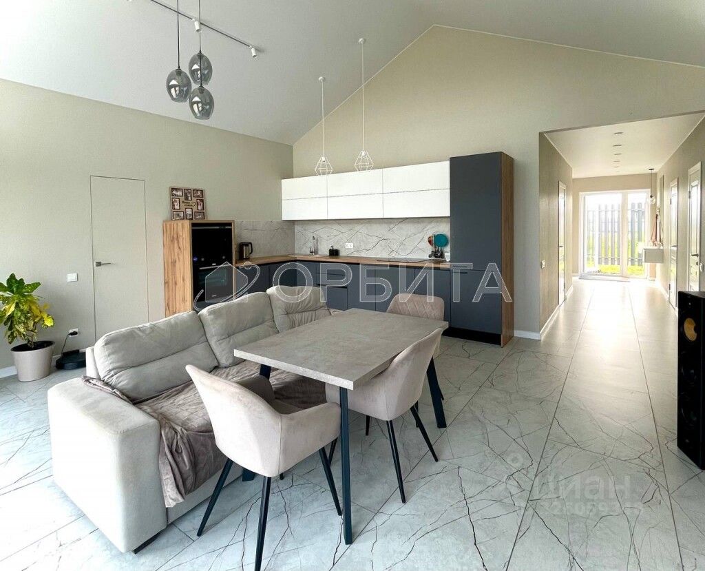 В доме просторная кухня гостиная со вторым светом и выходом на террасу.