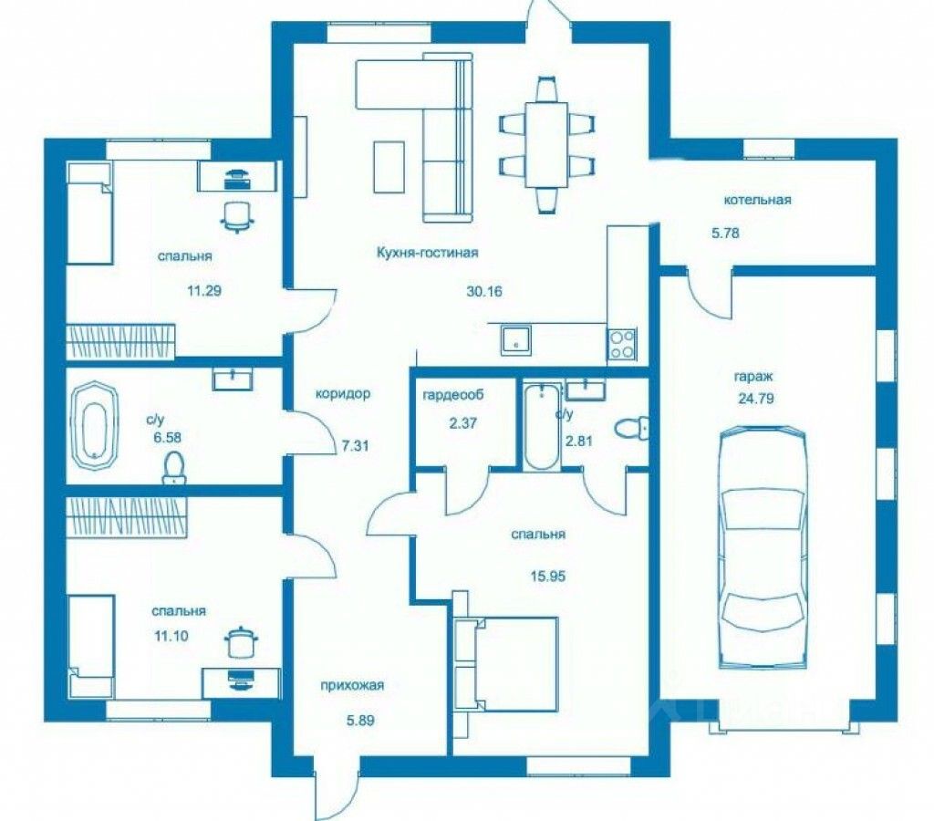 Две спальные комнаты и одна мастер спальня со своим сан.узлом и гардеробной.