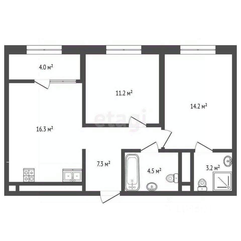 Отличная детская комната площадью 11,2 м² и мастер-спальня 14,2 м² со своим сан.узлом 3,2 м² идеально подойдут для отдыха, а кухня площадью 16,3 м² позволит вам комфортно собирать всей семьёй. В ванной комнате (4,5 м²) и прихожей (7,3 м²) предусмотрено всё необходимое для комфортного проживания.