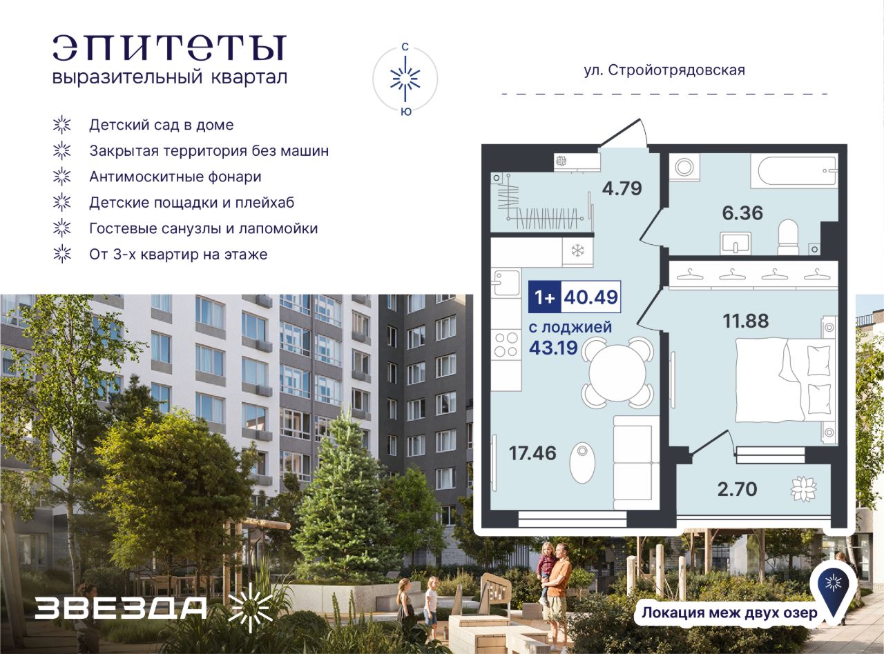 продам 1-к, Стройотрядовская, 45 260 000 ₽